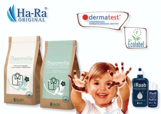 Kolejny fenomen na naszej liście to naturalne Proszki do prania Saponella Ha-Ra niezbędne dla wszystkich lubiących piękną biel białych tkanin i żywe kolory ubrań kolorowych.