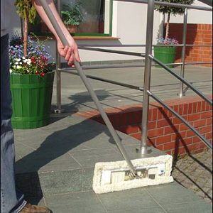 Dzięki inteligentnemu łączeniu przegubem stopy z drążkiem Ekspres podłogowo-ścienny stalowy Ha-Ra 42cm jest bardzo poręczny. Idealny do odkurzania i mycia podłóg, ale też z łatwością myje czoła schodów, ściany oraz sufity.