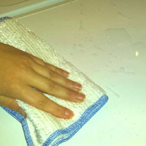 Ściereczka Dry jest bardzo chłonna. Wchłania około 3/4 szklanki wody. Jest miękka i elastyczna. Bardzo elegancka. Łatwo oddaje brud.