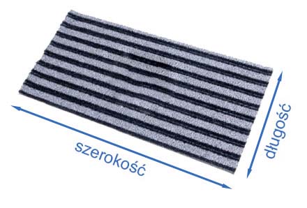 - Włókna wycieraczek przedzielone są tzw. rynienkami. Czarne włókno z dłuższym włosem charakteryzuje się większą sztywnością i oczyszcza spód obuwia z większych zanieczyszczeń. Szare włókna są bardziej elastyczne, dzięki czemu wyłapują drobne zanieczyszczenia, piasek, małe kamyki, wodę i osuszają spód obuwia.